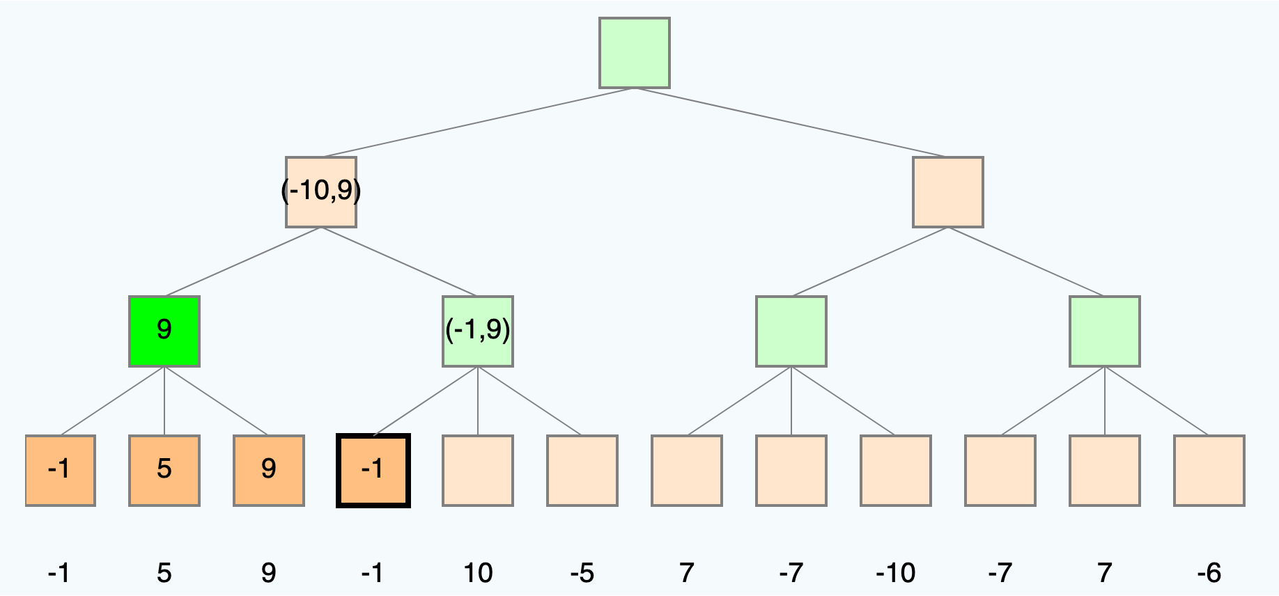 Lösen Sie den Baum mit Hilfe von alpha-beta-pruning. (rot=minimierend, grün=maximierend)