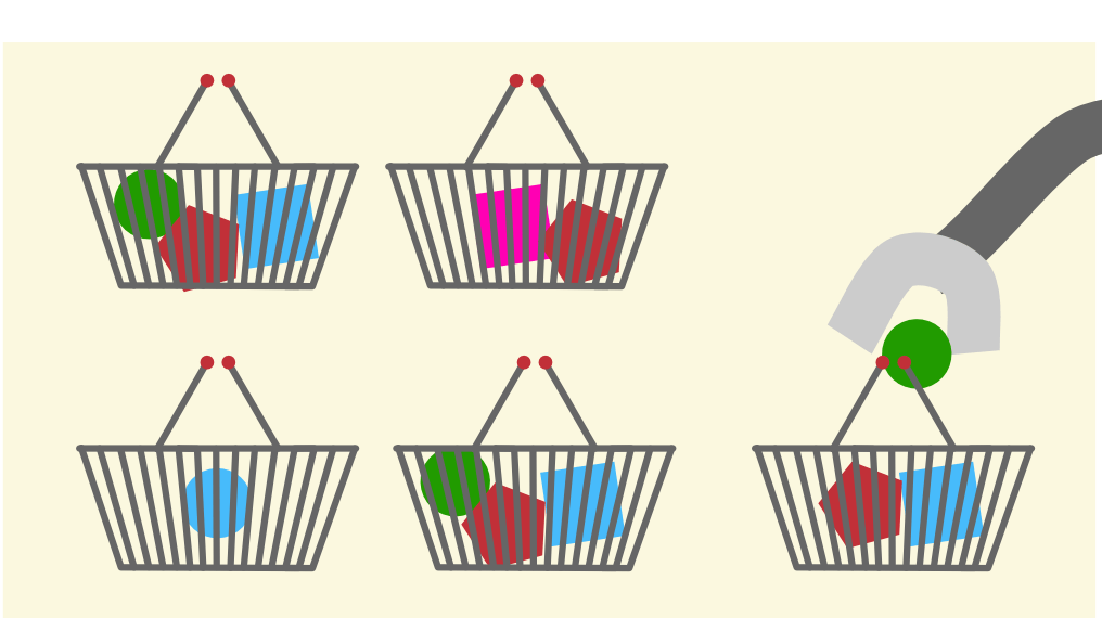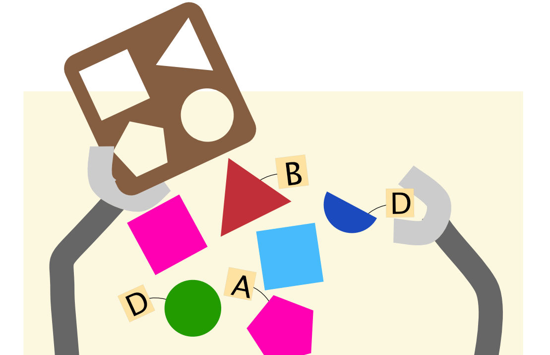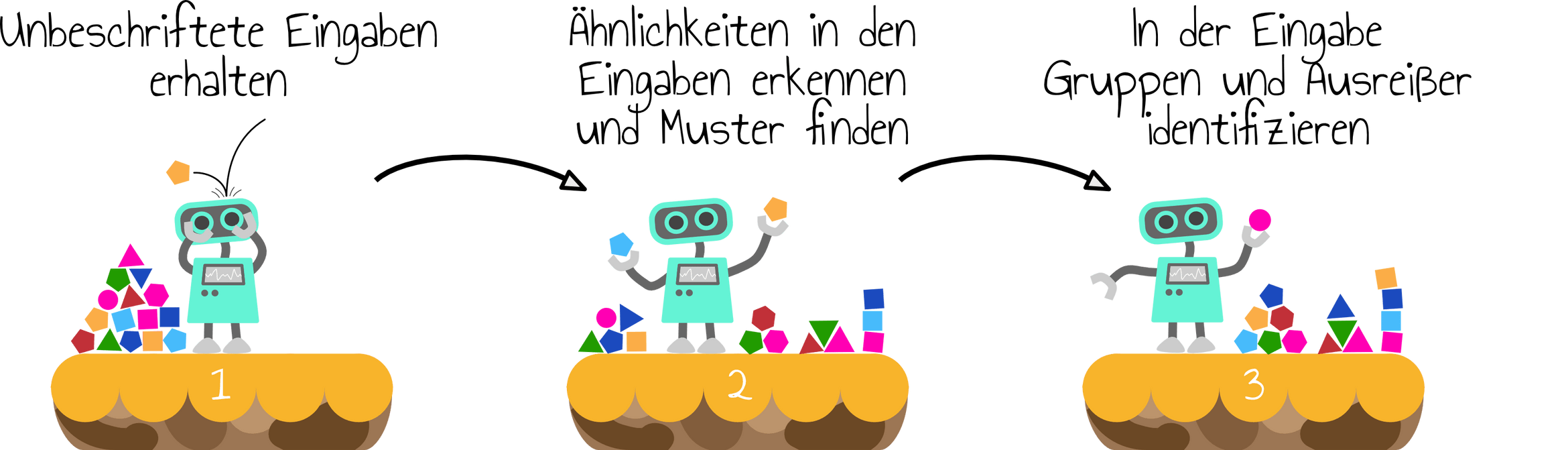 Unsupervised learning (deutsch: unüberwachtes Lernen) kommt dann zur Anwendung, wenn keine beschriftete Eingabedaten zur Verfügung stehen. Man könnte z.B. Kindern eine Kiste Legosteine geben und sie bitten, diese zu sortieren. Was dabei genau rauskommt, ist nicht im vornherein klar: Vielleicht werden die Steine nach Grösse, vielleicht aber auch nach Farbe sortiert.