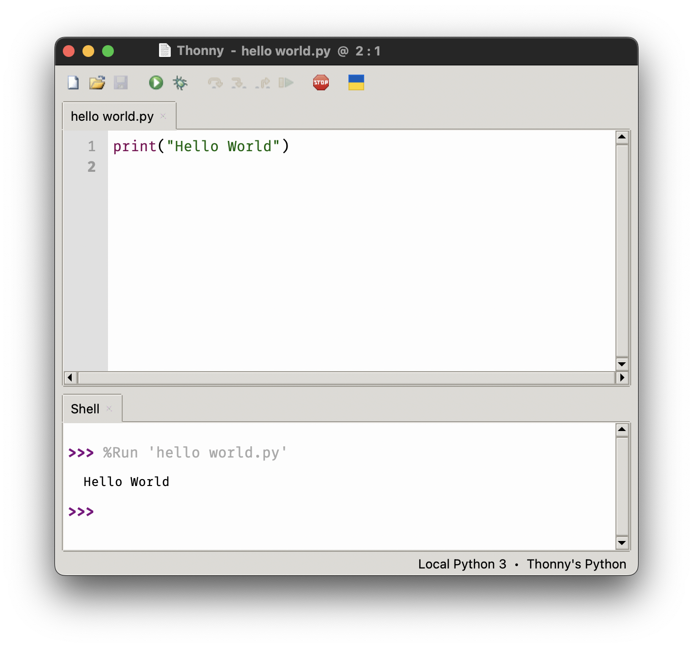 Das Hauptfenster von Thonny besteht aus zwei Bereichen: