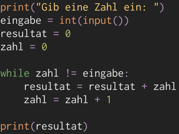 Es werden alle Zahlen bis zur, aber ohne eingegebener Zahl zusammengezählt!